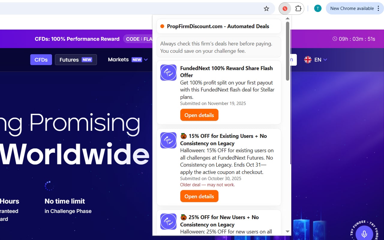 How to Auto Find Prop Firm Discounts, Coupons & Deals (2025) – Free Chrome Extension